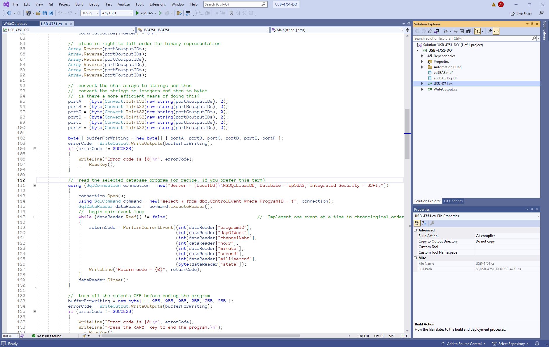 If you know of sources of industrial-quality I/O hardware which can be used in the processes automated by ep5BAS, please consider helping us look into them. The criteria for inclusion center principally on the ease with which C# code can read from and write to the proprietary systems and subsystems. We are even willing to work with manufacturers seeking to expand the applicability of their product range by opening their hardware to user-created .NET software.